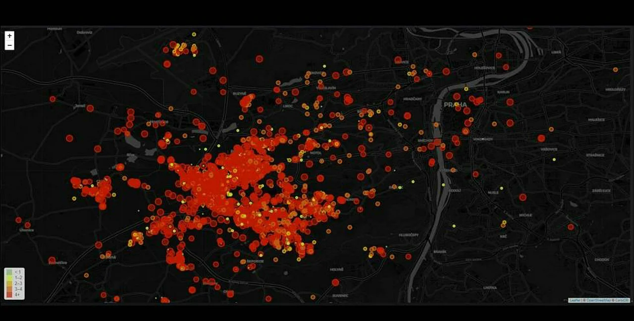 Residents in the affected areas have created an online form on the site Smradek.eu to track the daily intensity of the smell. Maps tracking the 50 most recent posts shows that wind direction has a large influence on the spread of odor, as reports tend to cluster. The most recent map can be seen on the Smradek.eu website.