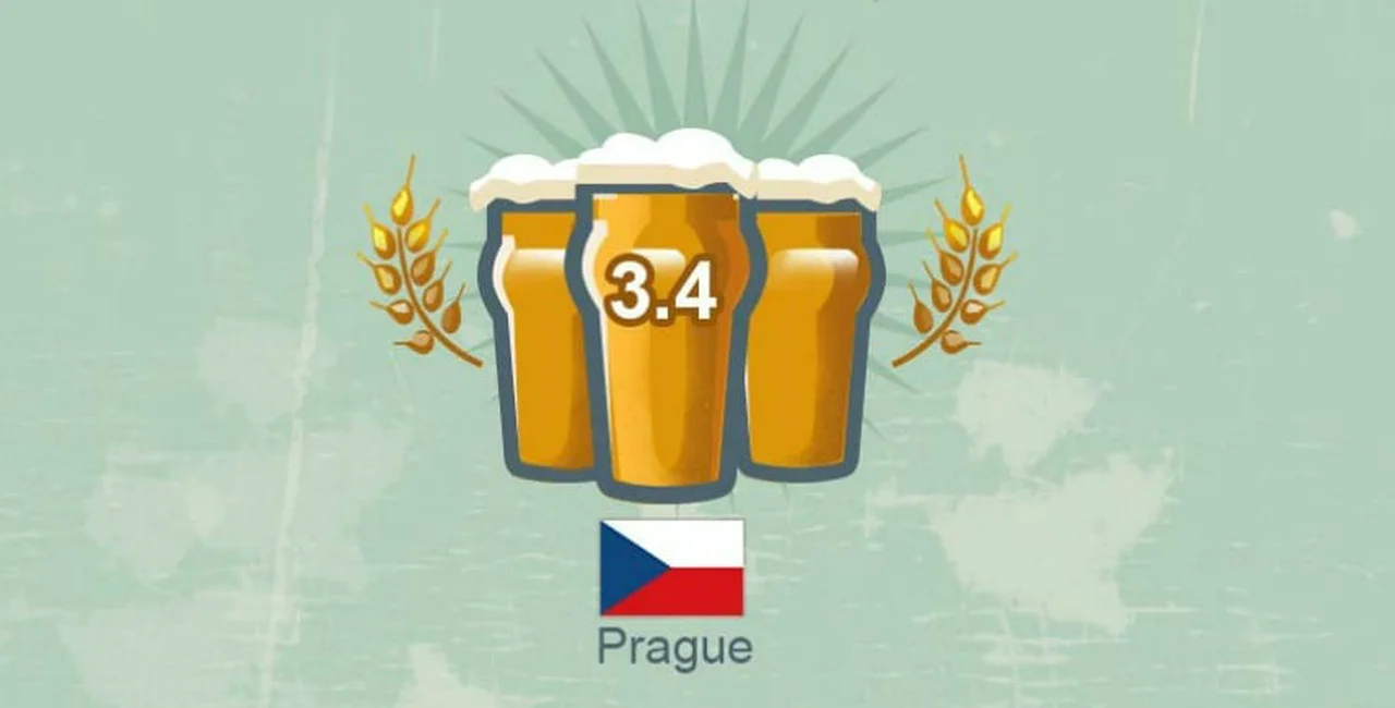 The cost of a pint in Prague was calculated at £1.17 (34 CZK).