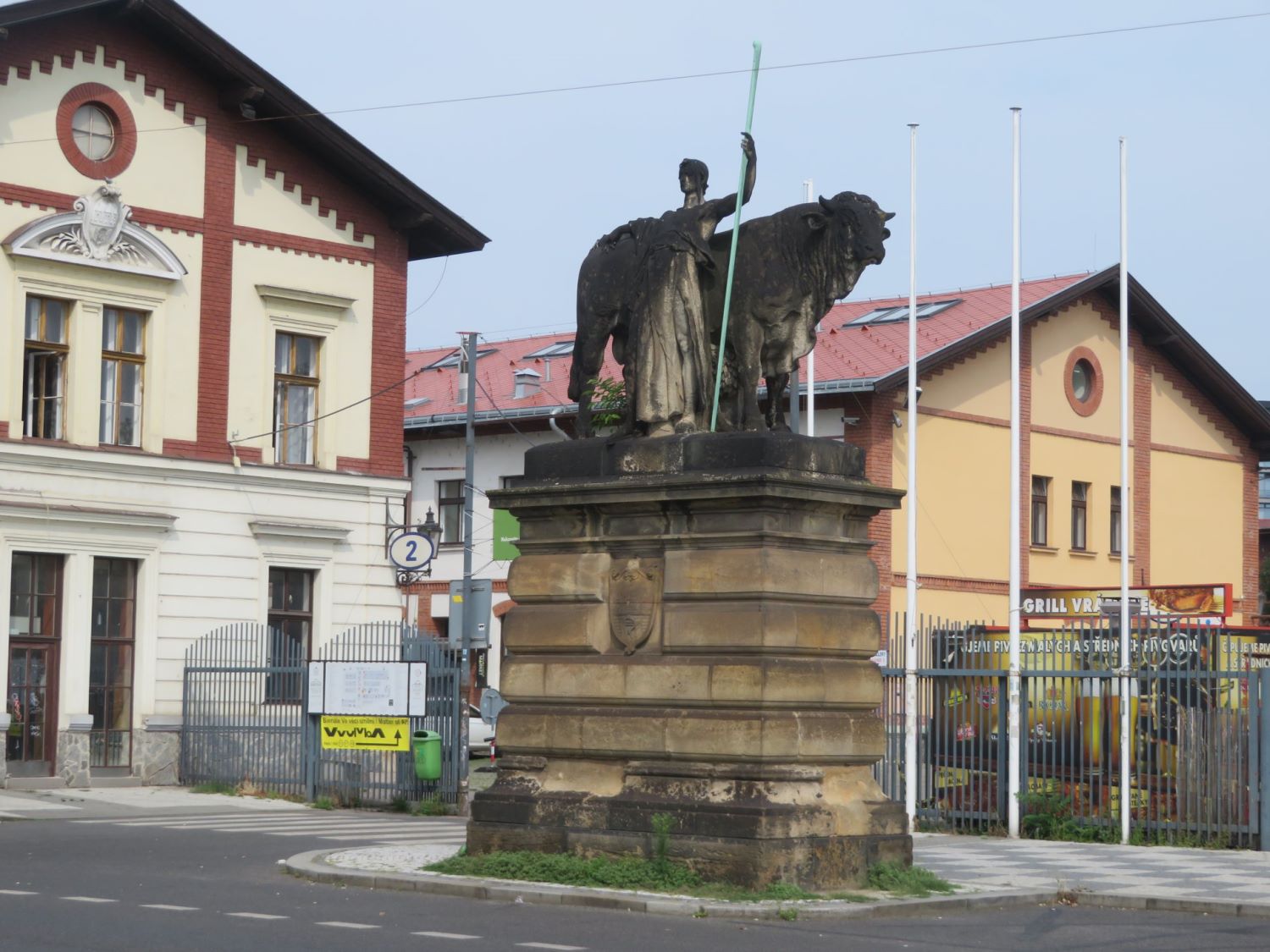 The market, formerly the Central Slaughterhouse of the Royal City of Prague (Ústřední jatka královského města Prahy), was built in 1983 and inaugurated in 1895. Since 1993 it has been protected as a cultural monument. The area of 103,060 square meters consists of 40 buildings with Art Nouveau and Neo-Renaissance design elements. The architect was Josef Srdínek. The two bull statues at the entrance to the complex are by Czech sculptors Bohuslav Schnirch and Čeněk Vosmík.
