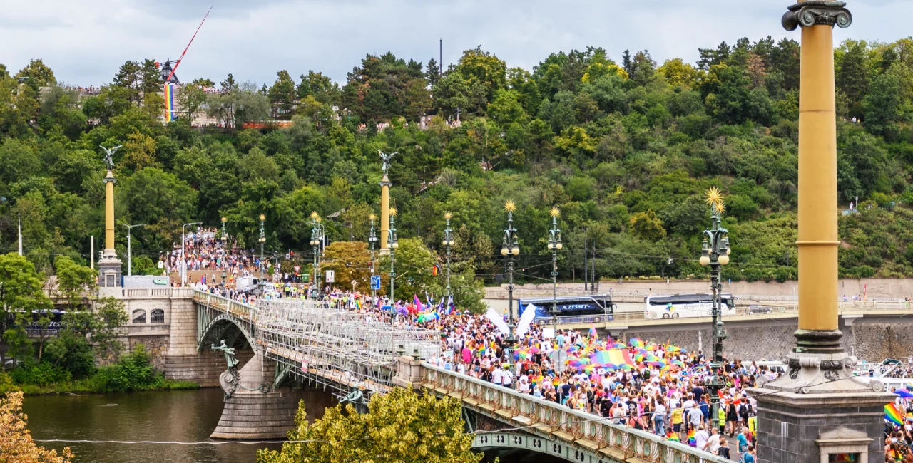 The parade began at Prague's Wenceslas Square after noon and saw participants march through Old Town Square and down Pařížská street. It ended atop Letná hill at around 2:15 p.m., and culminated with a series of concerts heading into the evening hours.