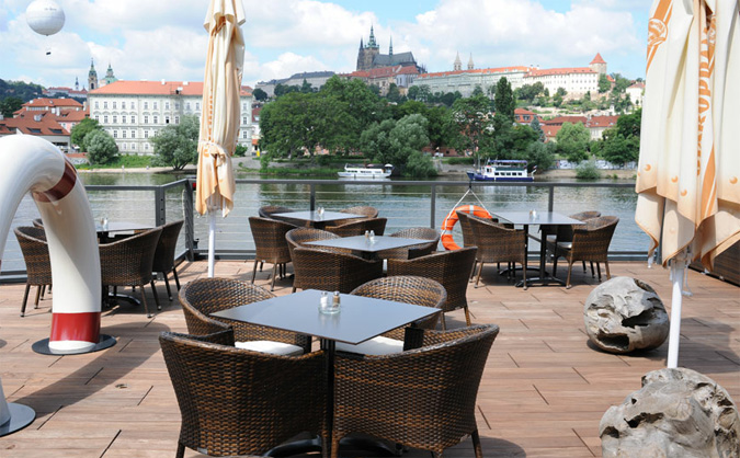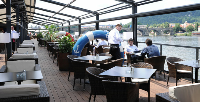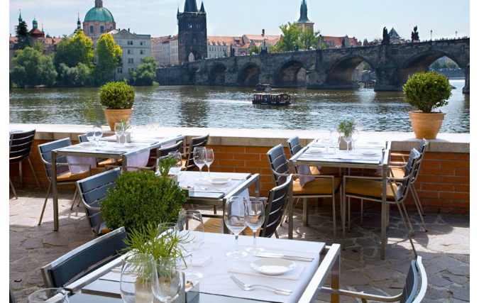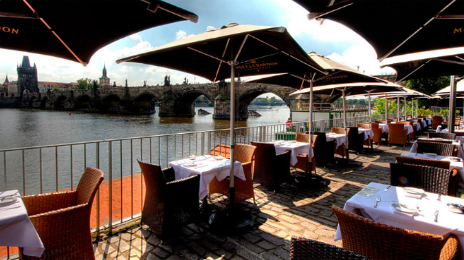 The tables down by the river have a wonderful view of the Charles Bridge, which sits next to the restaurant.