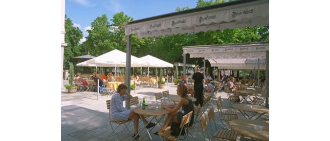This is one of my favorite summer hangouts, weather permitting. For the higher-end experience, you can eat (or have your wedding party) at Restaurant Belcredi in the top part of this old villa in Letna Park. I’ve never done this. If you want the mid-range experience, you can eat at Brasserie Ullmann in the lower part of the villa or just in front of it.