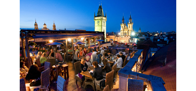 The rooftop of this restaurant overlooks Old Town Square. It’s just across from the Astronomical Clock and is a popular place to be when the weather is good.