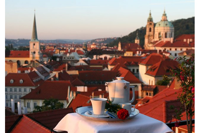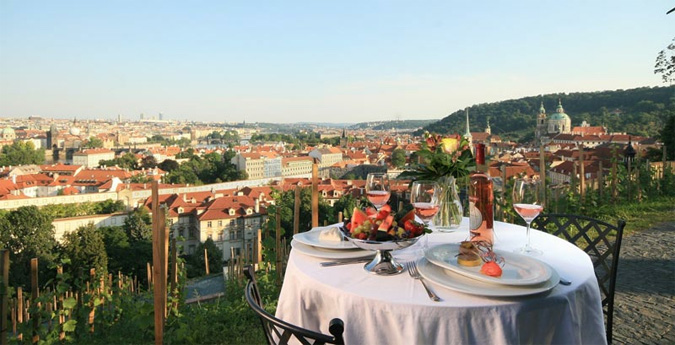 But I sometimes hunger for something extra special when dining al fresco. After all, Prague is a feast for the eyes. Glimpses of the Golden City can add magic to a meal.