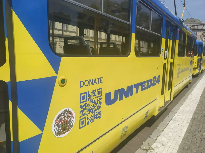 By introducing the tram, Prague is joining an international fundraising effort called United24, which was launched by Ukrainian President Vladimir Zelenskiy. The side of the tram has a QR code that people can use to donate money, which will go to defense, clearing mines, medical assistance, rebuilding Ukraine, education, and science.