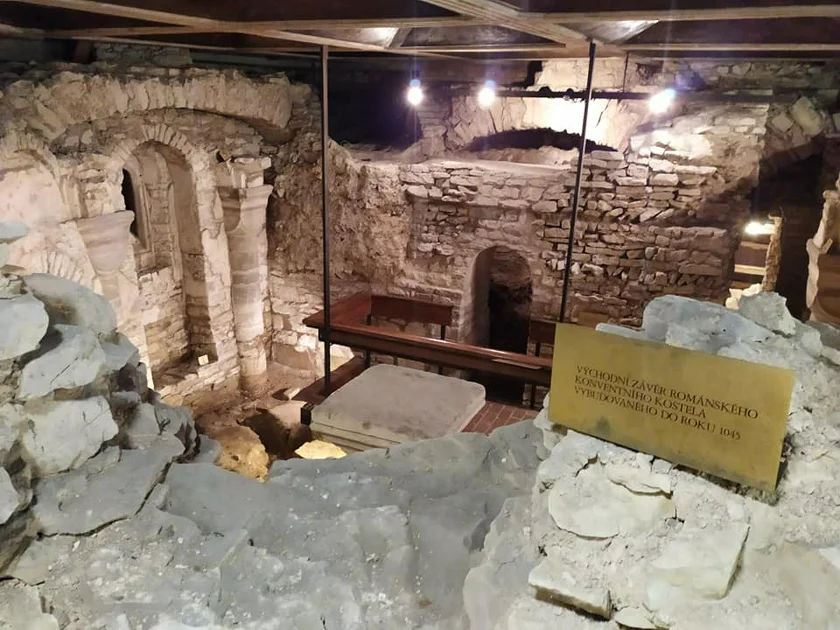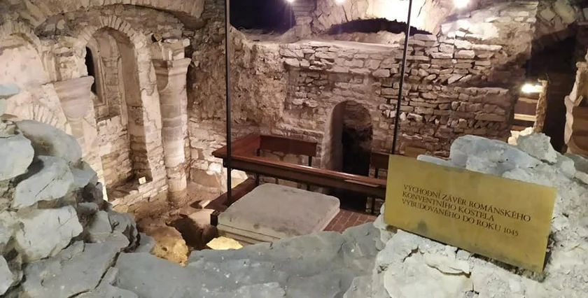 The original buildings were made of wood, and nothing remains of them. These were replaced by stone structures that were all but destroyed in the Hussite Wars in the middle of the 15th century. The oldest still-existing parts of the monastery include an 11th-century Romanesque crypt that has survived from the earliest stone church.