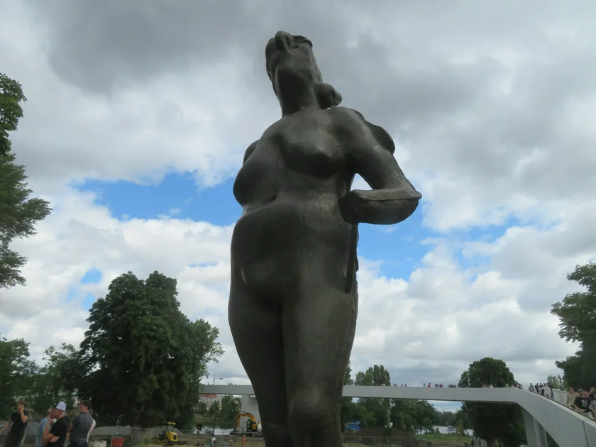 There is also a new sculpture called River (Řeka) at the entrance to the Štvanice ramp by 85-year-old sculptor Jan Hendrych, which was financed by the Prague City Gallery. The abstract sculpture is made out of the same ultra-high-strength concrete as the footbridge. It is the first artwork to use this material.