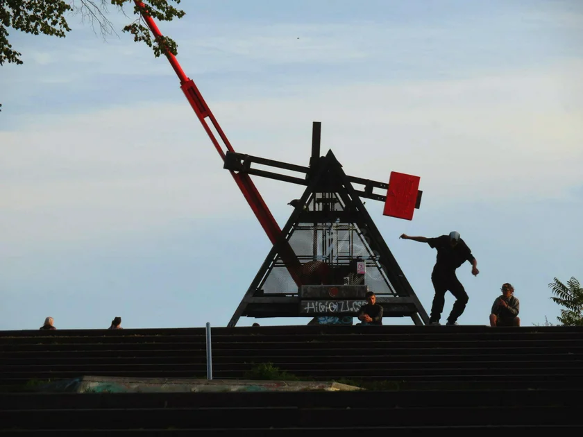 Since the early 1990s, the area around the metronome has been used by skateboarders and other young people as a place to congregate. The area had to be closed in September 2019 due to structural concerns about the former base for the stature, but many skateboarders went anyway as the place is associated with defying the rules.