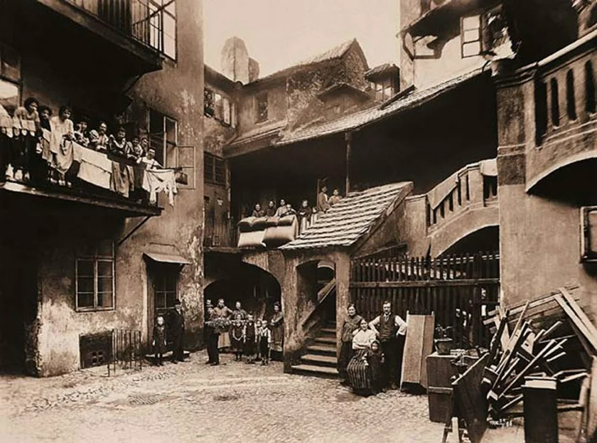 The end of the restrictions, though, led to a worsening of conditions in the ghetto. Many Jews moved into better and more modern neighborhoods, and the ghetto – still densely filled with substandard housing – became home to Prague’s seedier elements with a reputation for crime, especially at night.