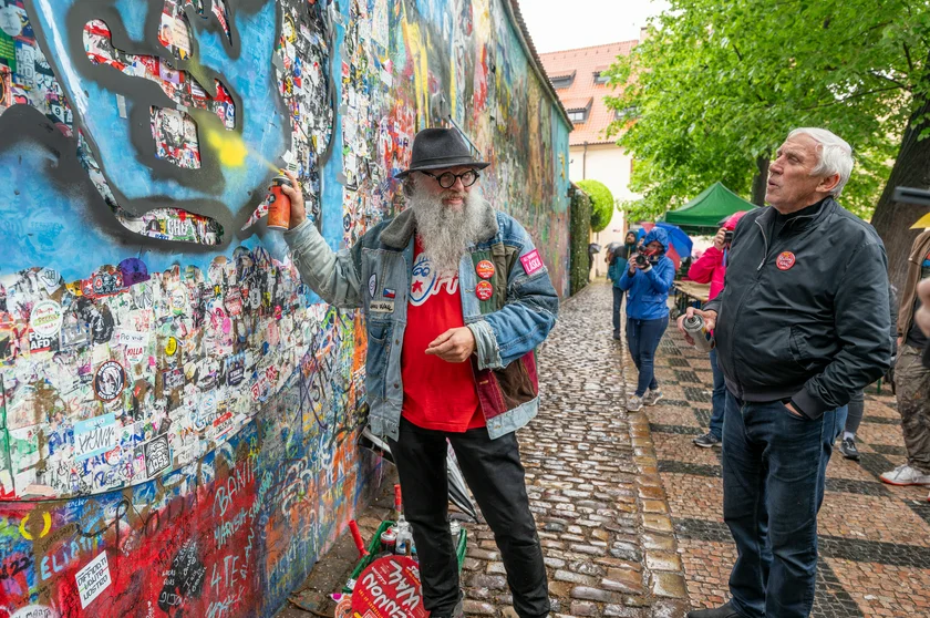 The iconic Lennon Wall in Prague came alive Friday afternoon as artists unveiled three historical portraits of music star John Lennon, launching a global initiative to inspire “walls of freedom and energy” around the world. Several notable figures attended the event, including Government Commissioner for Human Rights Klára Šimáčková Laurenčíková and director of the Václav Havel Library Tomáš Sedláček.