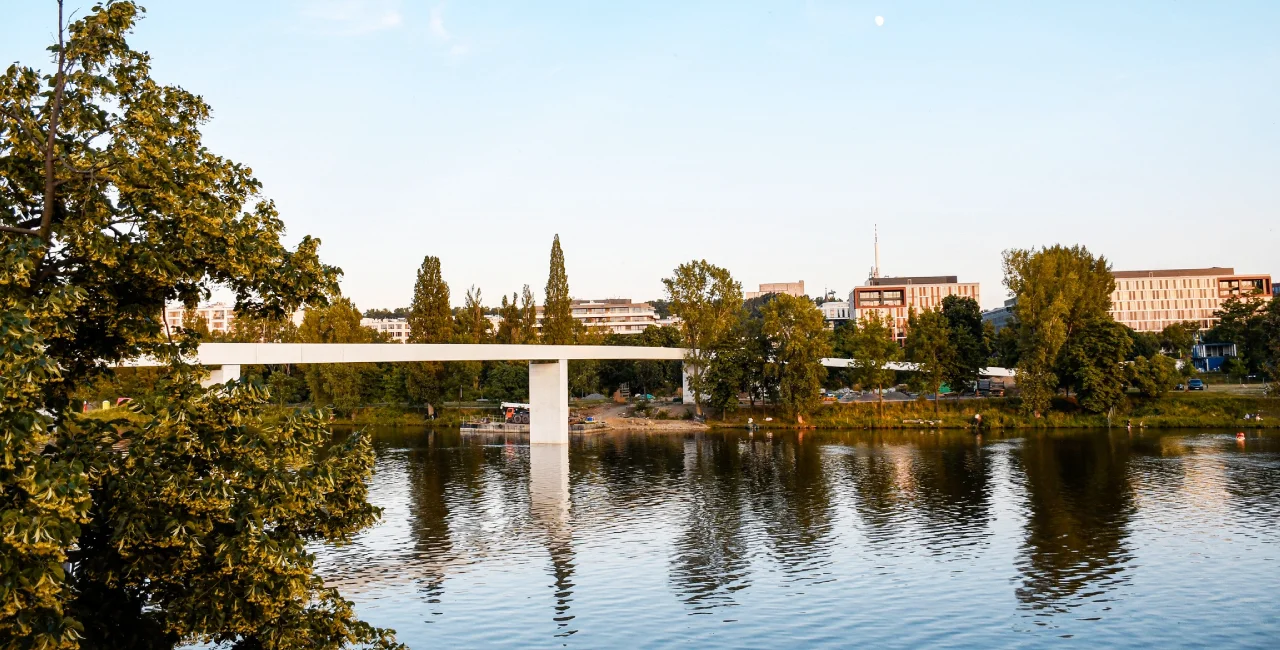 Work on the pedestrian bridge finally began at the beginning of 2022, following an architectural competition five years earlier. The bridge will provide minutes-long pedestrian access to two Prague districts that have previously been separated by lengthy public transport journeys.