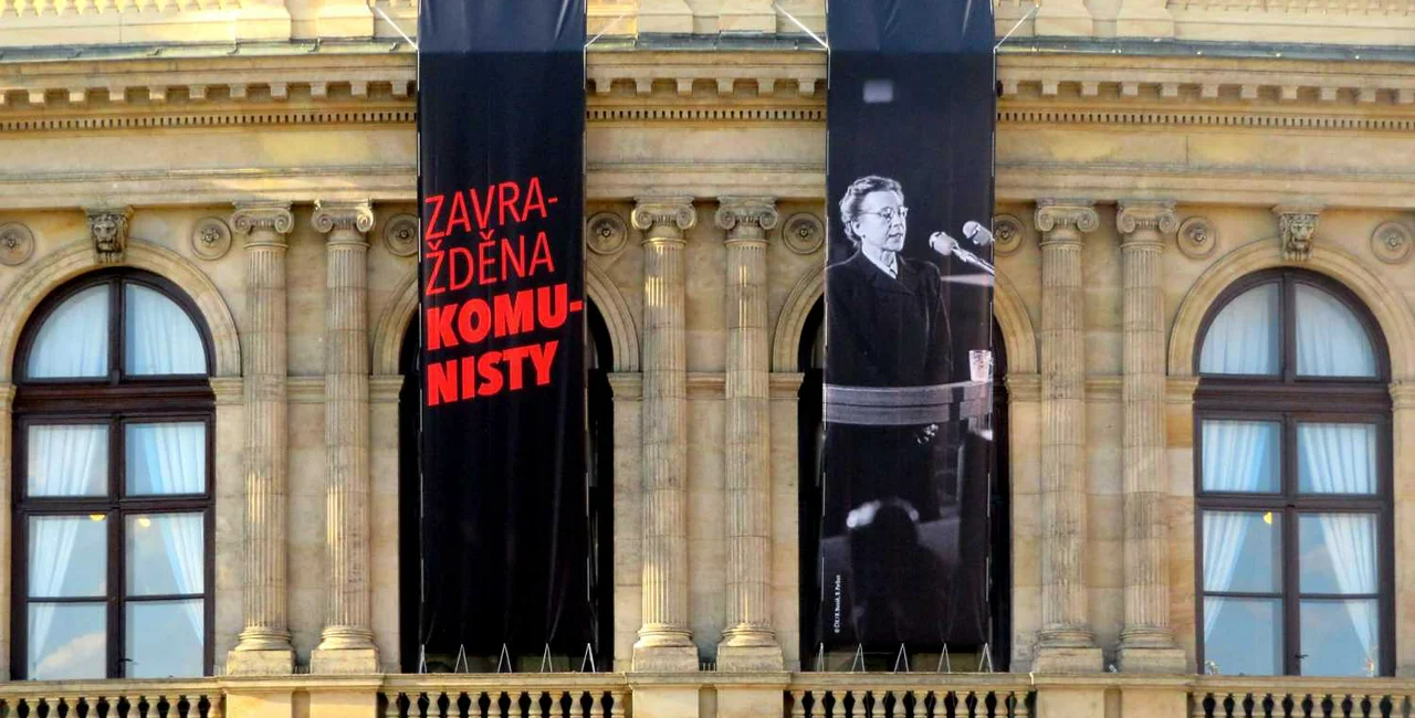 Dozens of banners with a portrait of Milady Horáková and the caption “Zavražděna komunisty” (Murdered by Communists) are being hung on important buildings in Prague for a period of one to two weeks. These sites include the Faculty of Law of Charles University, where Milada Horáková studied, and the buildings of the National Museum, FAMU, the Rudolfinum and Veletržní palác.