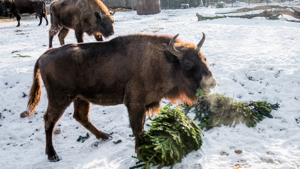 Christmas presents for animals – distribution of gifts given by visitors for animals and unused Christmas trees