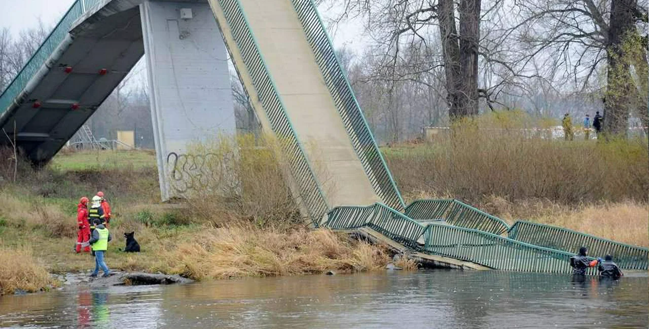 The failed bridge, designed by architect Jiří Stráský, was completed in 1984. It replaced a bridge that was destroyed in a flood in 1981.