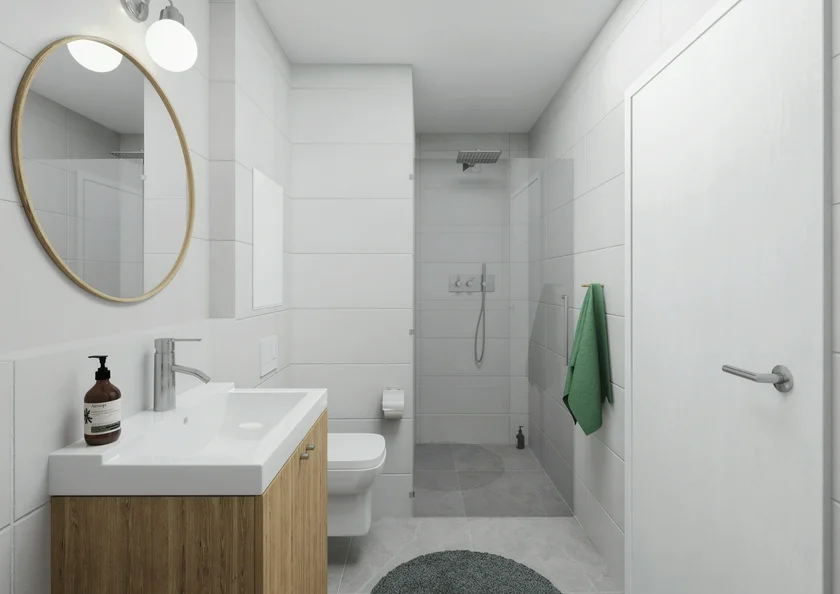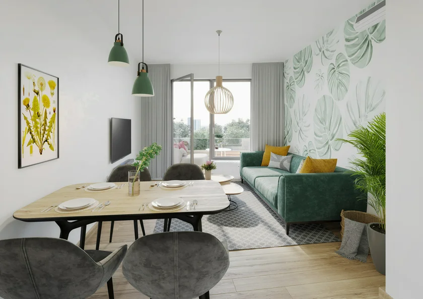 The building comprises 27 apartments ranging in size from 27 square meters to 73 sqm and layouts from 1+kk to 3+kk, offering comfortable living space for individuals and entire families. Most flats have a balcony or a front garden. The residential units are characterized by timeless, practical, and cozy design. The play of light in the interiors is accompanied by harmonious natural tones. The clean lines and colors can be tastefully enlivened, for example, by green motifs.