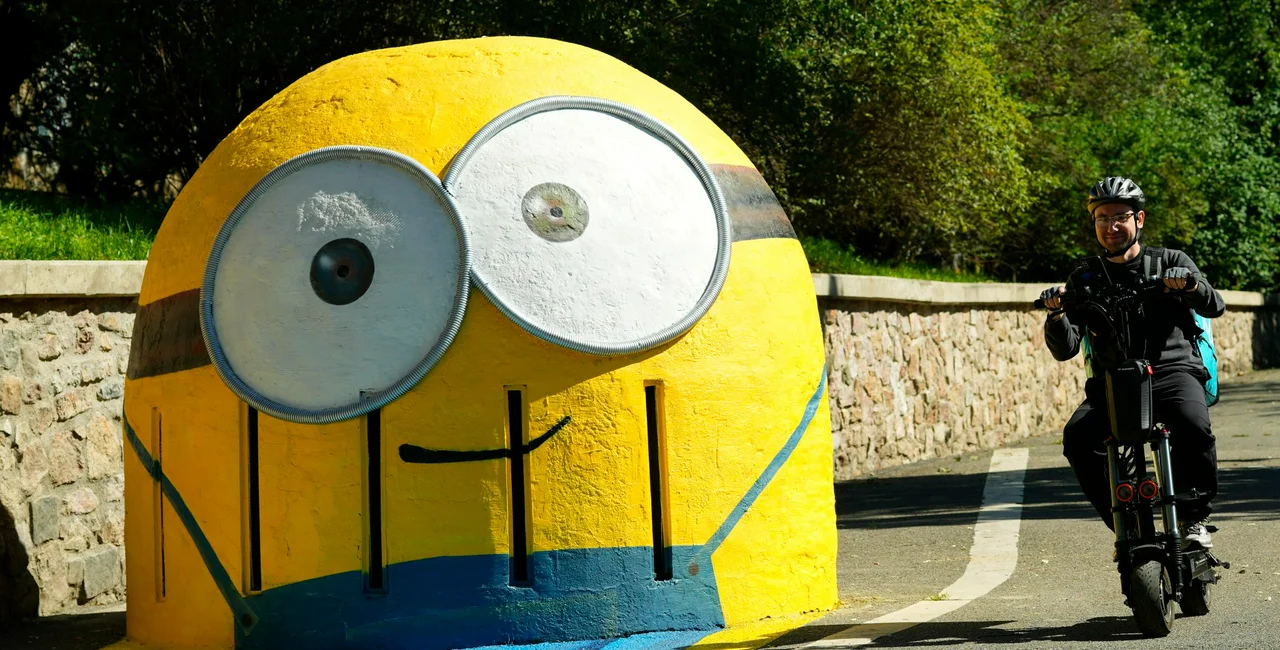 An additional fallout shelter vent at Folimanka Park has been given a full-body coat of paint (and piping goggles) in the style of the minions from the Universal movies. Originally side character in the Despicable Me series, the minions got their own movie series that saw the release of a second film, Minions: The Rise of Gru, earlier this summer.