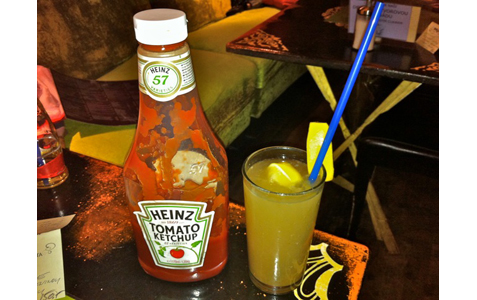 I like ketchup with my eggs, and the waitress gave me their huge bottle of Heinz.