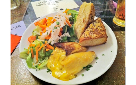 For food, I started with the baked peppers stuffed with cheddar and jalapeňos (135 CZK). The very soft pepper was nearly flavorless, but the creamy cheese and spicy jalapeňos were delicious. It had a very light texture.