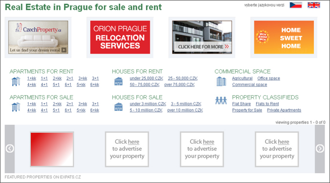 Spotlight na Homepage – 24 kreditů – jedná se o spotlight, který je umístěn přímo na hlavní stránce realitního portálu, konkrétně: https://www.expats.cz/praguerealestate/