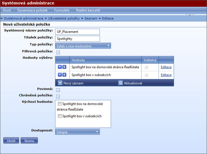Případné editace aktivní spotlight znovu nevloží a bude nutné zopakovat krok 1) či 2). To samé platí pro spotlight neaktivní při ponechání aktivní uživatelské položky. Jedná se o ochranu v případě, že by makléři tuto položku ponechali aktivní a nadále by se odečítaly kredity.
