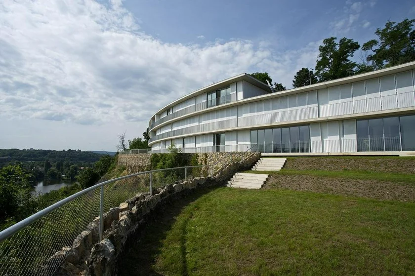 The wave-shaped house offers 16 apartments with layouts of 2+kk, 4+kk, and 6+kk. The maisonette apartments with their own entrances all offer an impressive view of the Vltava. They are equipped with their own balconies and have access to the outdoor terraces above the Barrandov cliffs.