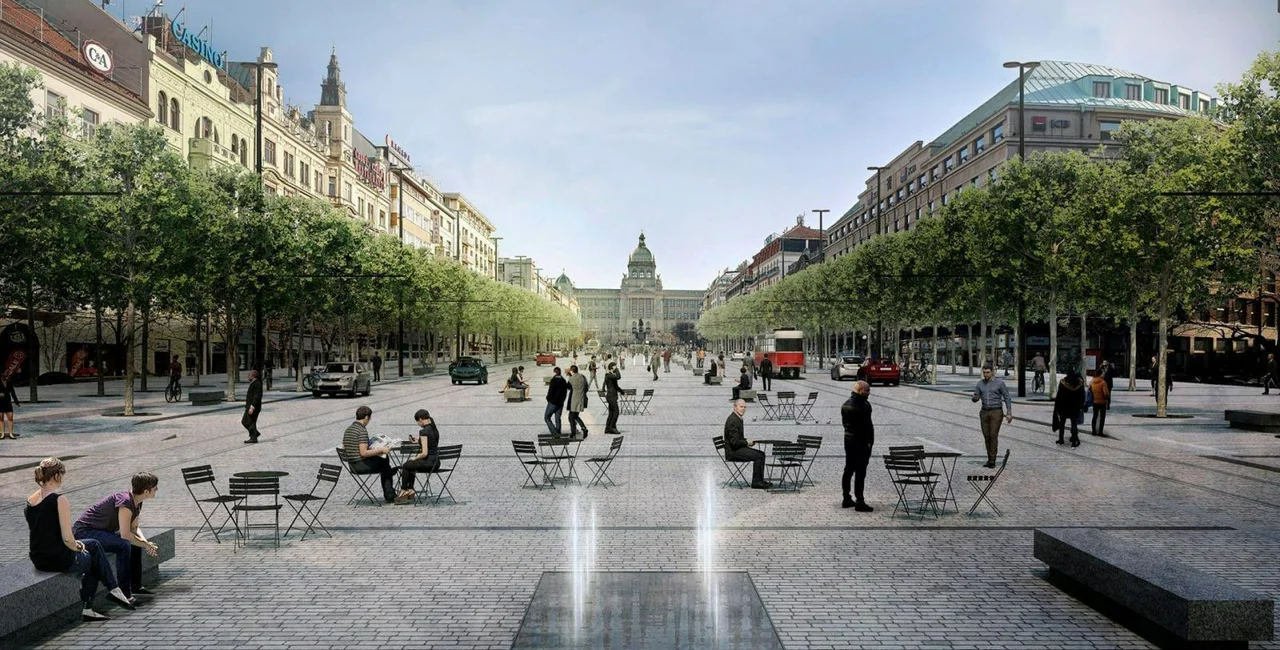The original proposal from 2005 to transform Wenceslas Square was created in collaboration with the Cigler Marani Architects studio (now Jakub Cigler Architekti) and the DUA Atelier. The idea was first raised in the 1990s. Since 2005, there have been a series of delays.