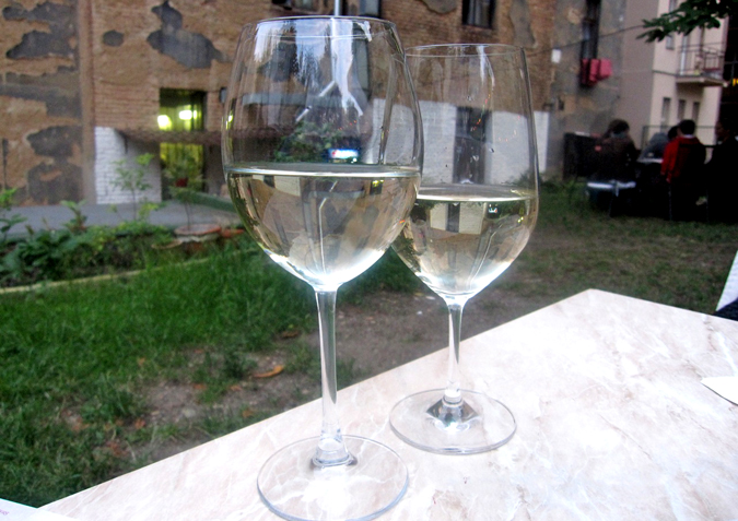 We started with some crisp, dry Pinot Grigio (55 CZK/.1 liter).