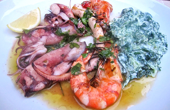 The seafood was very fresh and had great smoky flavor from the grill. The calamari was even slightly charred. We ordered spinach with ricotta on the side (55 CZK). It was a nice complement.