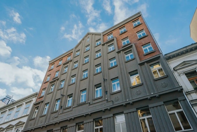The building houses twenty luxury apartments, one office floor, two shops and an internal courtyard.