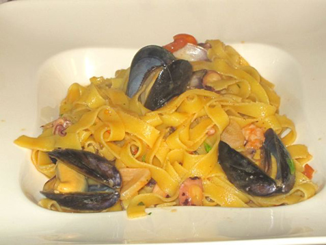 She declared the clams, mussels and calamari to be great. It also had small shrimp and a nice mix of herbs. However, the pasta was slightly overcooked and in need of salt. She said the sauce begged for more flavor. She said that more chopped tomato would have helped.