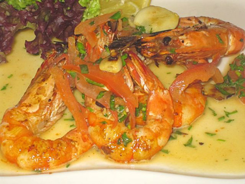 V had what I thought was the best dish of the night: the tiger shrimp grilled in lemon (325 CZK).