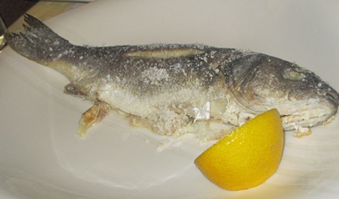 The Englishman ordered the sea bass baked in salt (320 CZK). V recommended this cooking method over the grilled version, and he was very pleased.