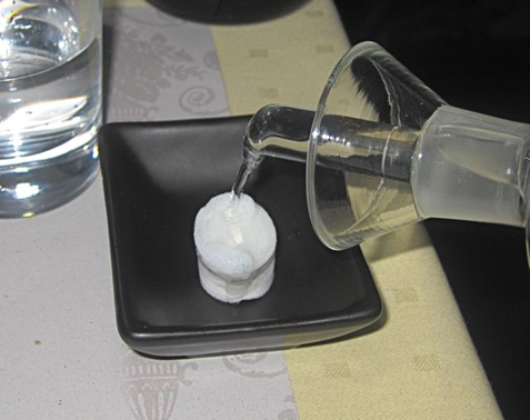 The service was mostly efficient and attentive throughout. Between courses, there was a little show. The waitress put something that looked like a big, white antacid tablet in a dish. Then, she poured water over it. It then expanded and turned into a moist cloth for cleaning your hands.