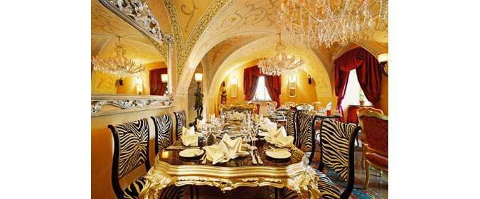 Though this restaurant has a chef who earned a Michelin star, I pick it not so much for the food, but for the way it looks. The dining room is just over-the-top opulence. I’ve never seen anything quite like it. With vaulted ceilings, red and gold or zebra chair cushions, crystal chandeliers, and mirror mosaics, it’s Louis IV meets Elton John. If you like flash and have plenty of cash, this high-end spot might be for you.
