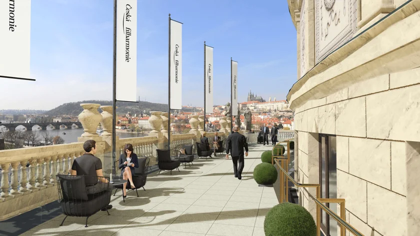 Renovation plans include the introduction of safety features and resurfacing as well as the introduction of an elevator to provide barrier-free access to the terrace. The space, with a total of 850 square meters, will also be utilized for special events held by the Czech Philharmonic.
