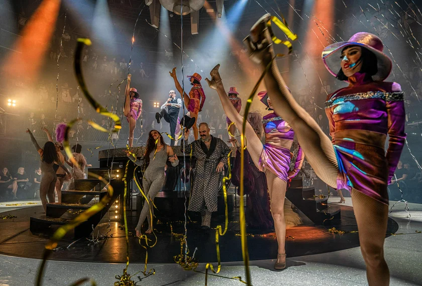 Twenty-six international artists dazzle throughout the show. Among the standouts are Russell Bruner, the U.S. clown-comedian crowned at the Burlesque Hall of Fame in Las Vegas; Belgian showgirl Colette Collerette, famed for her high-gloss glamour; and Dutch acrobat Michiel Tange van Leeuwen, heir to a circus dynasty. Then there is Betsy Rose, three-time winner of the UK’s top burlesque title, who transforms the stage into something “like Paris in the 1930s, except in zero gravity.”