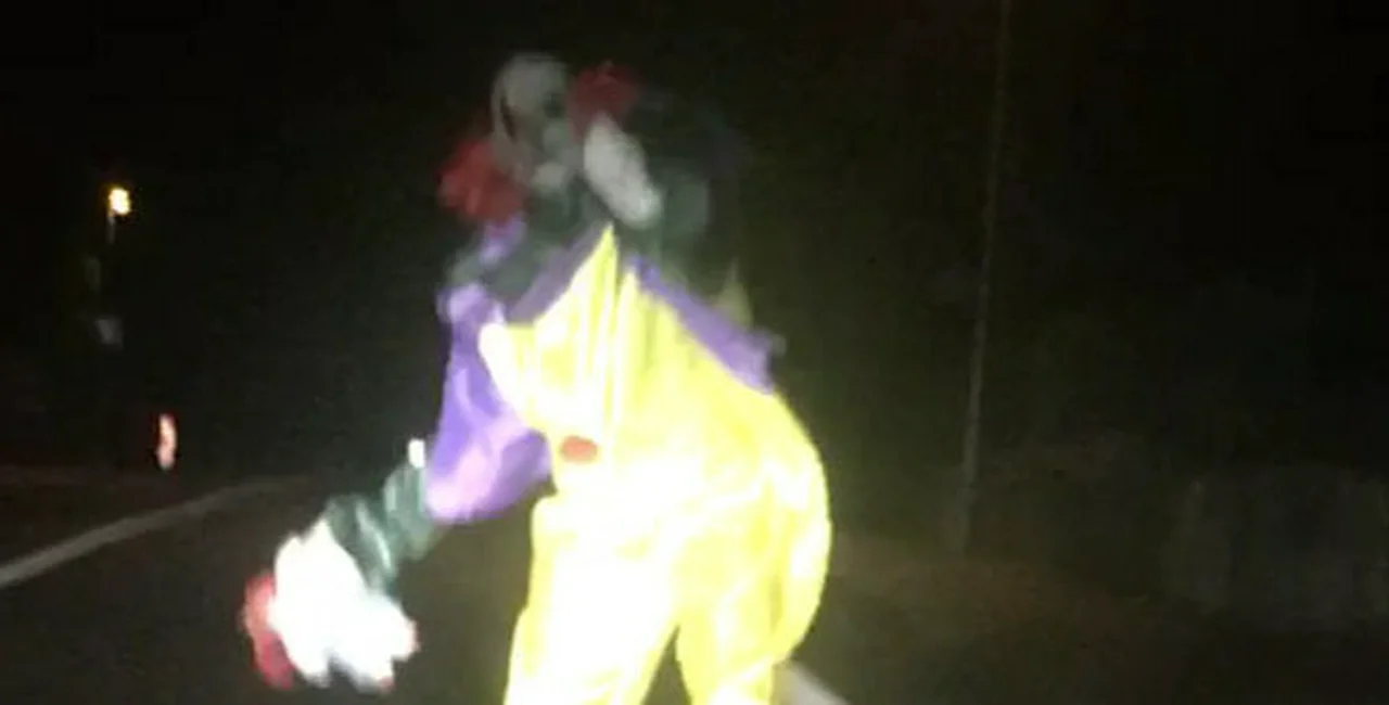 In amateur video that has been shared on Facebook more than three thousand times since being posted by nova.cz last night, an individual in full clown costume is seen waiting in the middle of the road as a motorist approaches.