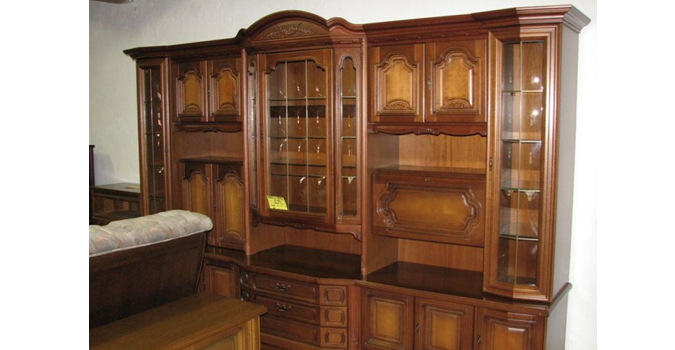 There are lots of wooden and upholstered stool pairs for easy extra seating in the living room, a section of mid-century modern furniture, coat racks, and wood wardrobes and dressers. There’s also a section of fairly unimpressive kitchen cabinets, but it might be worth a peek if you’re re-doing a kitchen.