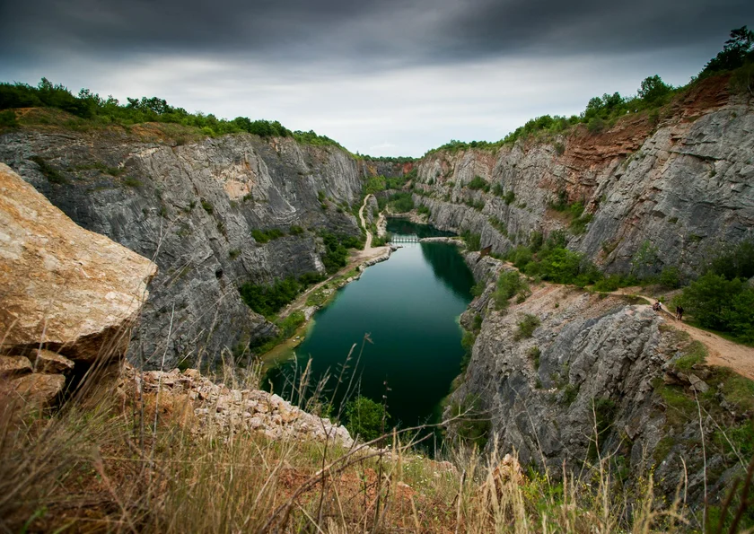 You don’t need to cross the Atlantic to find America and Mexico, for they lie just outside the village of Mořina, not far from Karlštejn castle, in the Bohemian Karst region. Velká Amerika, Mexiko, and Malá Amerika are the names given to three disused limestone quarries that were excavated here in the early part of the 20th century. The quarries are now flooded and hold clear water lakes edged with rocky cliffs, which dramatically fall away from the surrounding countryside.