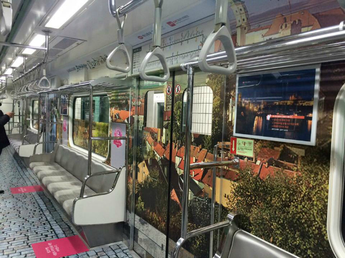 Photos from inside the metro were uploaded to the South Korean branch of the Czech Republic’s official tourism site, 체코관광청 – Visit Czech Republic: