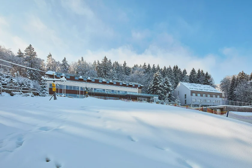 Ještěd ski resort with its iconic TV tower is roughly 111 kilometers away from Prague, reachable in about an hour on public transport. There are nearly 10 slopes for all levels and a ski school with an extended children's training area.
