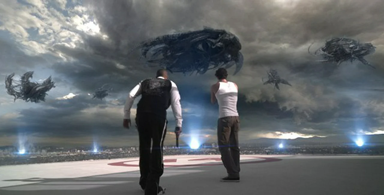 The concept is solid: during an alien invasion, we follow a group of incidental characters who know little of the grand scale of the invasion and are just fighting for personal survival. We see what they see from a penthouse apartment: huge alien motherships hovering above LA, blue beams abducting thousands of people, alien creatures roaming the streets, military efforts to stop them, which mostly fail. And we know what they know, which is next to nothing.