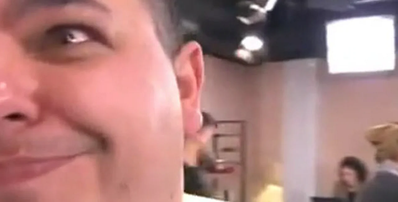 Perhaps realizing the live broadcast is capturing something it shouldn’t, the cameraman quickly pans up to Herko’s face to capture a sheepish grin.