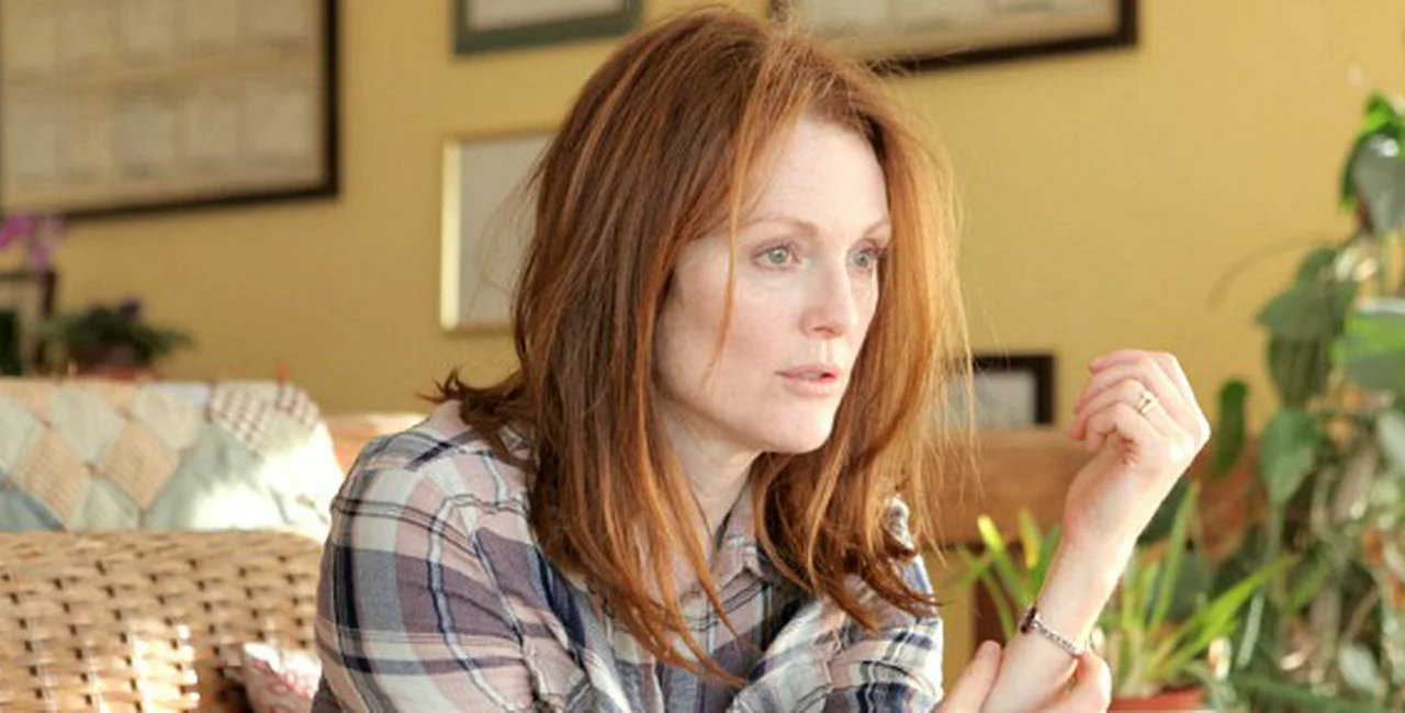 Those symptoms present themselves in all the predictable ways: Alice cannot remember words or (later on) people, she loses track of what she is saying mid-speech, and in one of the film’s more overwrought sequences, has a meltdown after misplacing her phone.