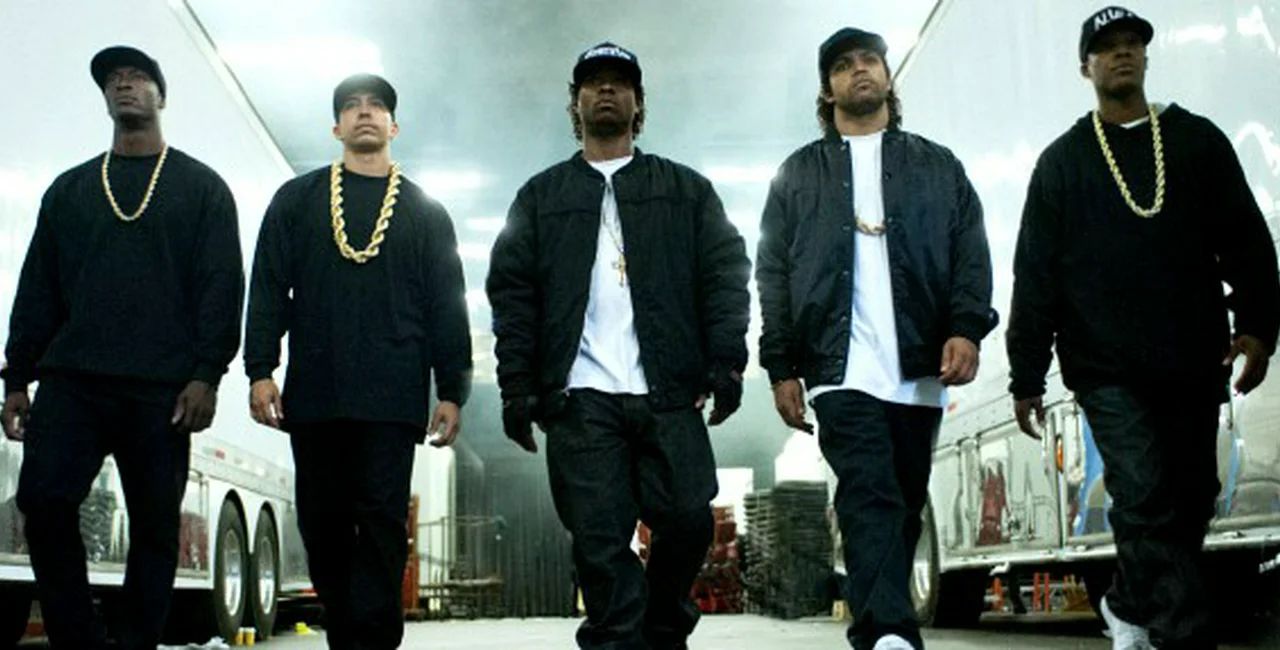 It begins in Compton, of course, where gun-toting drug dealers hijack school buses to teach kids a lesson, and aspiring DJ Dr. Dre (Corey Hawkins) leaves the comfort of his mother’s home to pursue a career in the music industry.