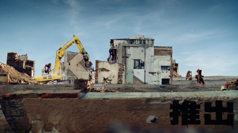 A clip of Epos 257 and crew installing a blown-up piece of street art on a Prague street: