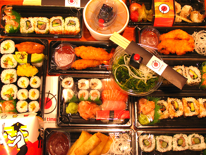Sushi delivery in Prague has never been easier—I suppose. Sushi Time is a new sushi delivery service and take-away counter. The set-up is similar to the UK’s Yo Sushi: place your order online and within an hour, receive a tidy package complete with chopsticks and little containers of soy sauce bottled like men’s cologne. The user-friendly Web site gives an estimated delivery time and if you opt for take-out, simply enter your desired pick-up time. Easy, right?