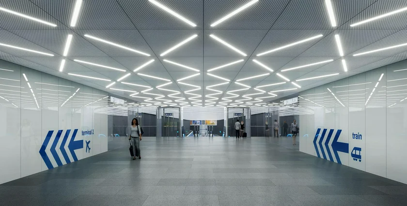 As the planned train approaches the airport, it will dip into a tunnel. The train station itself will be underground and will have a platform island in the center with tracks on either side. From the platform, people can use escalators to get up into underpasses leading to either Terminal 1 or Terminal 2. The station will be under a new extension to Terminal 2, which serves flights within the Schengen Area.