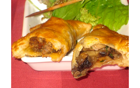 I had one with dry, ground beef that had a pleasant grilled flavor. But I preferred the moister empanada with mushroom filling.