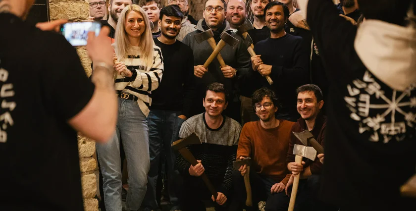 If your team needs to blow off steam, head to House of Axes near Karlovo náměstí. The venue features six throwing lanes across a 200 m² space, with instructor-led sessions throughout so there is a bit of practice before things naturally turn into friendly rivalries. The Viking-themed space works for groups up to 50+, and sessions usually build toward a final challenge, with formats tailored to the group.